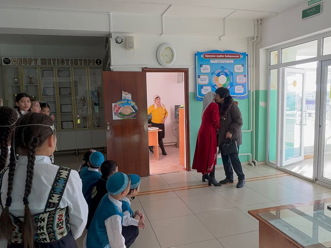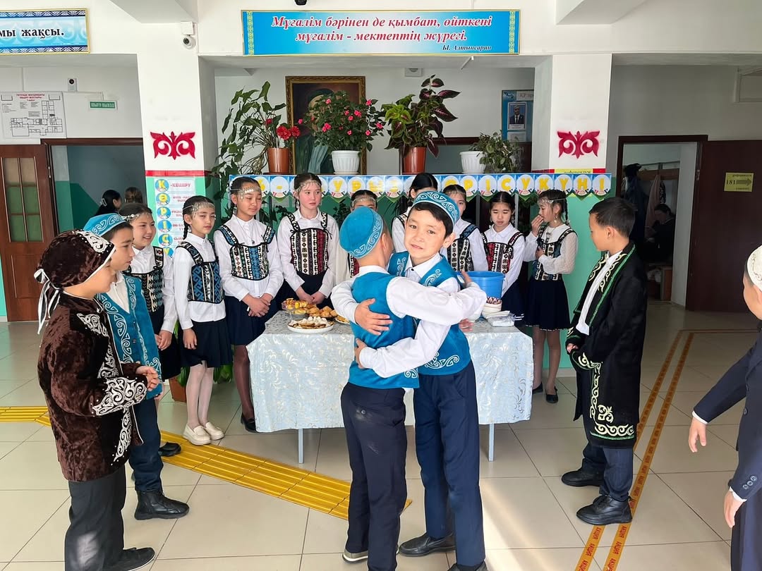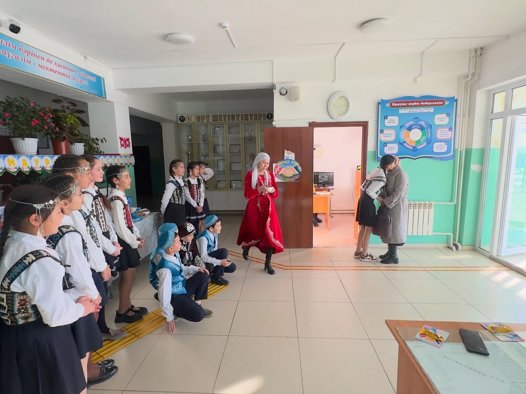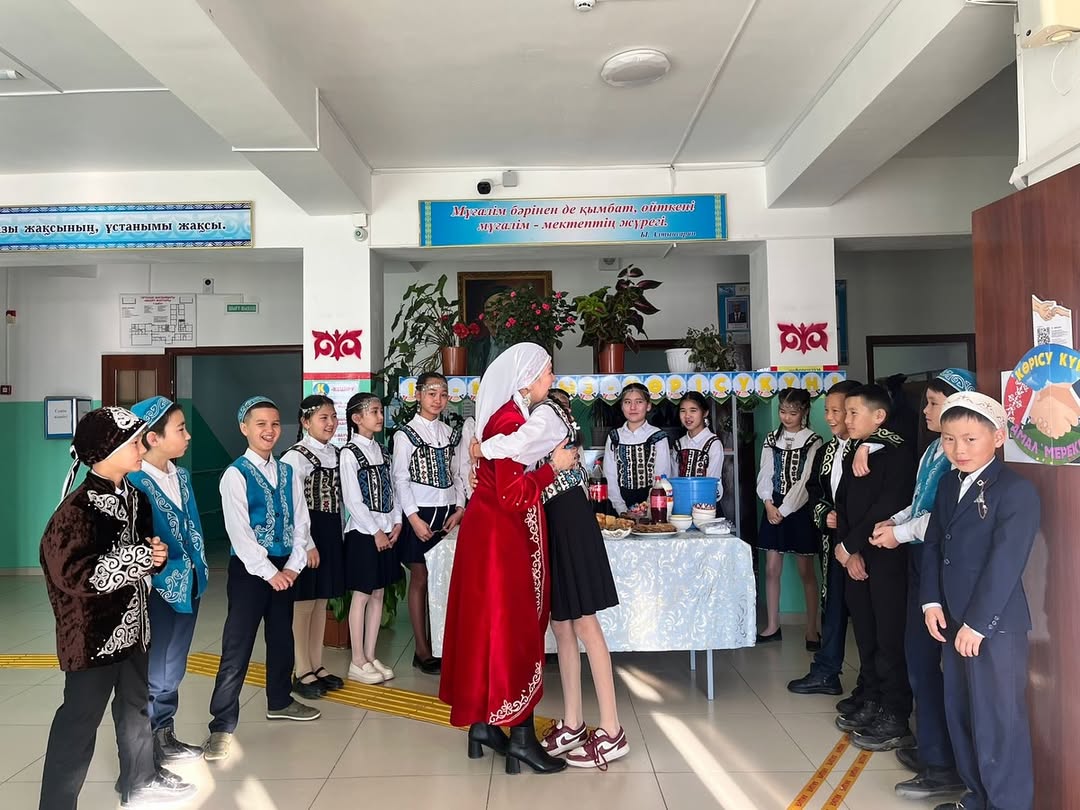”14 наурыз – Көрісу күніне” орай 5-сынып оқушыларының ұйымдастыруымен ұлттық дәстүрді дәріптеп, мектеп ұжымына ізгі тілектер айтып, жылы жүзбен қол алысып, көрісу дәстүрінің мәнін көрсетті.